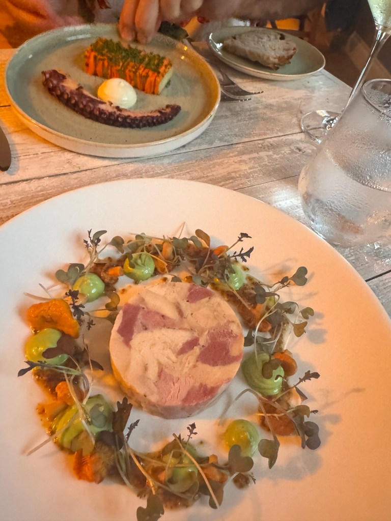 There were only two Cornish octopus on the menu, so naturally, we pounced, along with a chicken and ham hock terrine to share. Anyone who pickles mushrooms wins serious points in my book, and the tiny pickled Scottish girolles served alongside the terrine were the perfect burst of flavour and texture. Sharp, delicate, and exactly what that rich terrine needed.