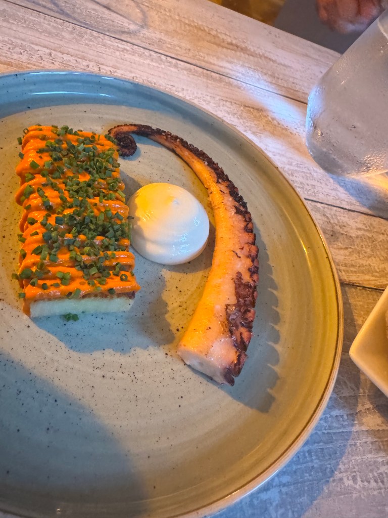 Now, I have a complicated relationship with octopus, I always order it, and I always feel mildly guilty doing so. But this one was cooked to perfection: tender, never mealy, and not even a whisper of chewiness. The Romesco sauce, piped delicately onto crisp fried potato, was spot on,bright, balanced, and thankfully free of that overpowering punch so many places lean into. It was thoughtful cooking, the kind that shows restraint in all the right places.